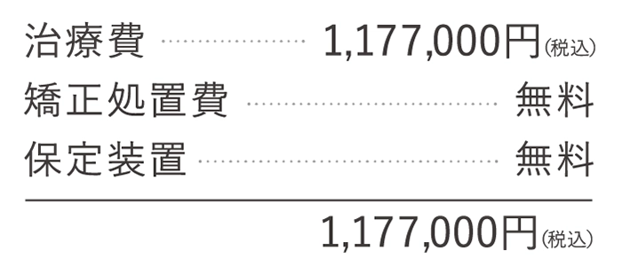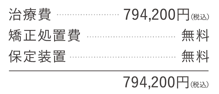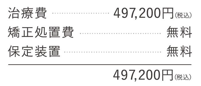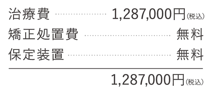 ※上記料金には治療開始から終了まですべての料金が含まれています。